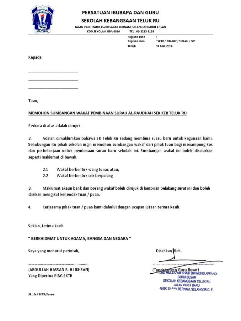 Contoh Surat Memohon Sumbangan Derma Pembangunan Surau Alfirdaus Taman Garing Utama Rawang Selangor Pdf
