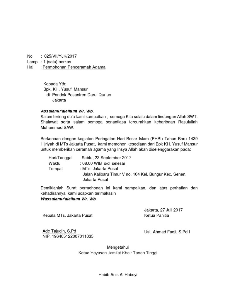 Surat Permohonan Menjadi Penceramah Yusuf Mansur Pdf